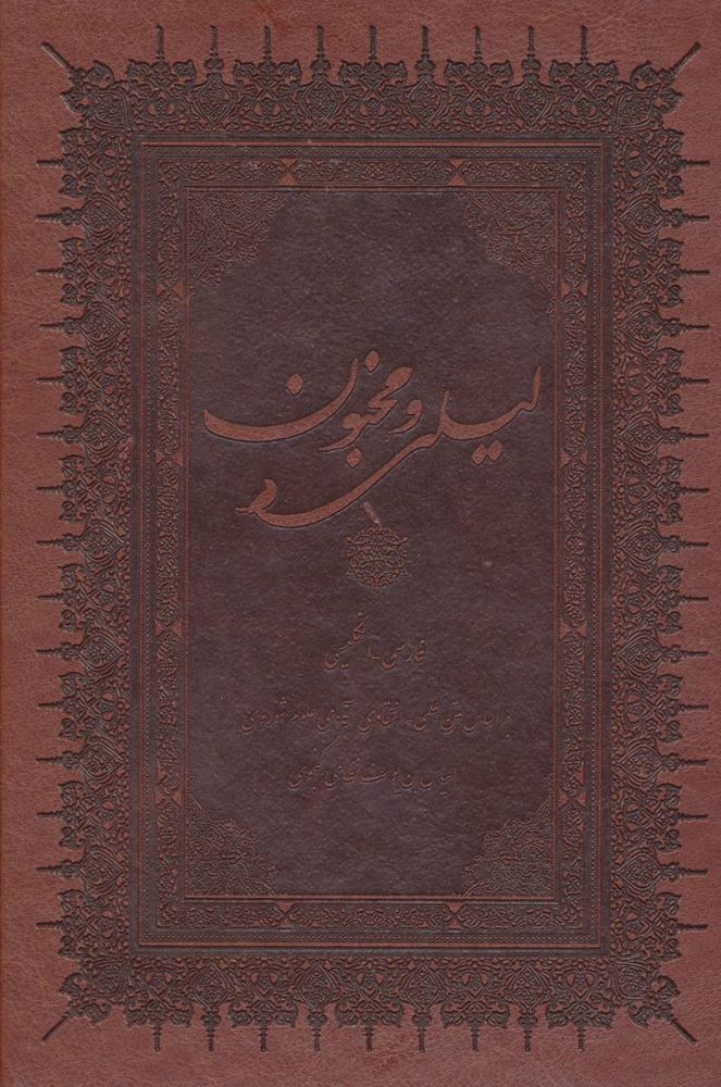 لیلی و مجنون با مینیاتور (2زبانه،گلاسه،باقاب،چرم)(بهزاد)