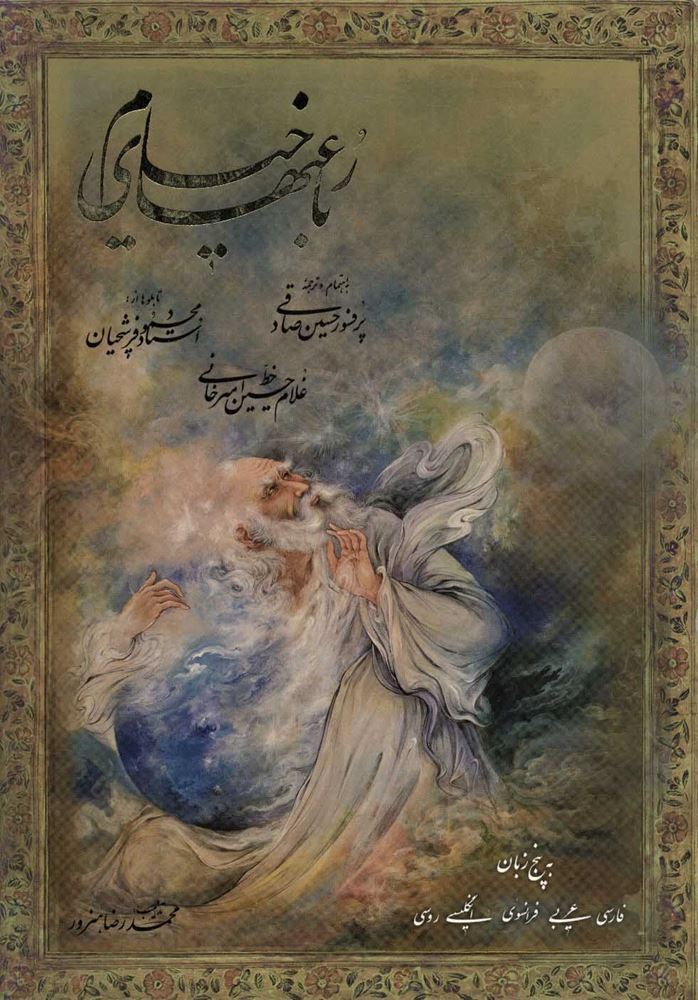 رباعیهای خیام با مینیاتور (5زبانه،گلاسه،باقاب،لب طلایی)(رحلی)(سخن)